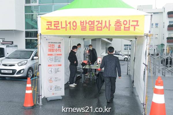 시청사에 드나들 수 있는 후문 출입구에서는 근무 직원이 상주해 출입자들의 발열 체크와 통제를 하고, 후문 출입구가 폐쇄되는 19시부터는 후문 출입구가 봉쇄되고 정문 당직실 옆 야간 출입문을 이용하게 된다.