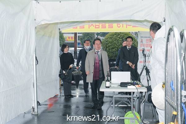 시에서는 청사를 출입하는 모든 공무원과 민원인의 출입동선을 후문으로 일원화하고 후문 이외에 현관을 포함한 모든 출입구는 전면 통제하기로 했다.