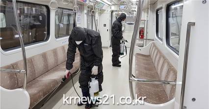 또한, 많은 승객이 밀집해서 탑승하는 열차는 당초 1일 8시간에 대해 1회 운행 시 마다 방역을 실시했으나, 전체 운영시간으로 확대해 김포공항역 회차 시 전체 차량에 대해 방역을 확대하고, 차량기지에 주박되는 차량은 전문방역업체를 통해 세밀한 방역을 진행 중에 있다.