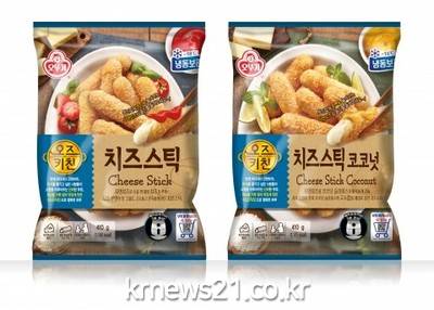 ▲ [이미지제공 = 오뚜기]오뚜기(대표이사 이강훈)가 자연치즈의 풍부한 맛을 가정에서 간편하게 즐길 수 있는 ‘오즈키친 치즈스틱’ 2종을 출시했다.