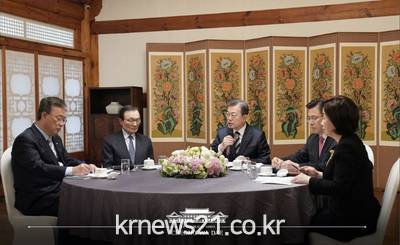 문 대통령은 이날 국회 사랑재에서 이해찬 더불어민주당, 황교안 미래통합당, 유성엽 민생당, 심상정 정의당 대표와 회동했다. 오후 3시께 시작된 회동은 4시 40분까지 100분가량 진행됐다.