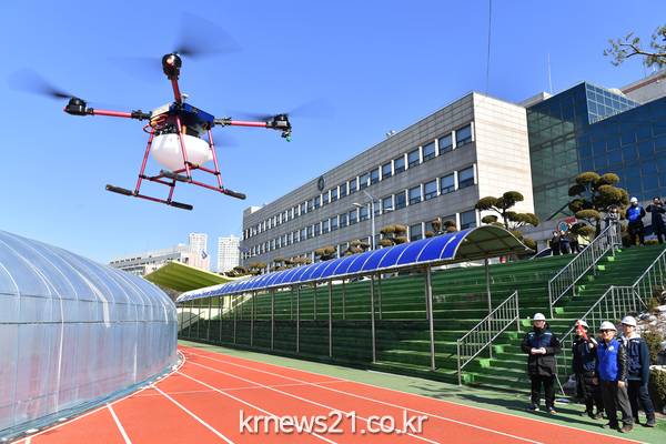 성숙한 수원시민들의 의식은 방역 분야에서도 두드러졌는데, 가장 눈에 띄는 활동은 드론을 활용한 학교 방역이었다.