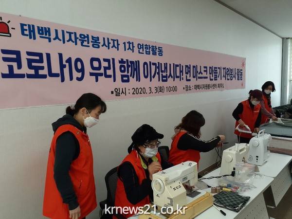 태백시 자원봉사센터(소장 윤갑식)에 따르면, 태백시 관내 자원봉사단체에서 이번 주 중으로 약 1,500여개의 면 마스크를 제작해 취약계층에게 배부할 예정이다.