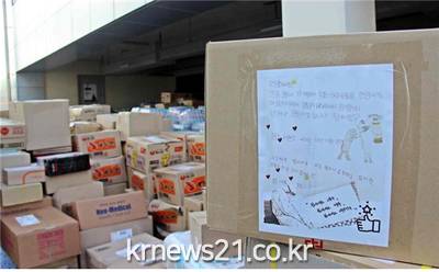 기관이나 단체의 기부뿐 만 아니라 익명의 국민들이 보내온 기부물품의 종류도 다양하다. 집에서 직접 만든 김밥과 반찬을 보내오고 아이들은 삐뚤삐뚤한 글씨로 쓴 감사 편지와 과자를 함께 보내기도 했다.