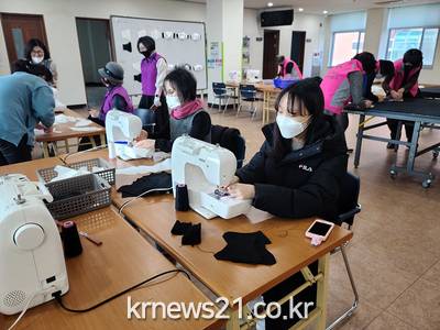영덕읍 주민자치위원회 위원들과 자원봉사자 등 30여명의 자원봉사자들은 지난 6일부터 영덕문화체육센터 청소년문화의집에서 면 마스크 자체 제작을 시작했다.