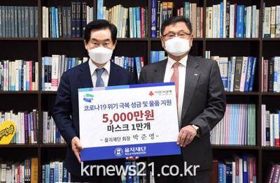 박준영 을지재단 회장은 3월 12일 의정부시청을 방문하여 코로나19 위기 극복을 위해 성금 5,000만 원과 소아용 마스크 1만개를 기부했다.
