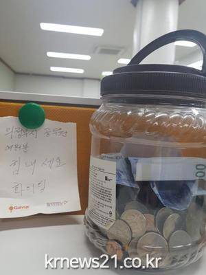▲ [사진제공 = 의정부시]코로나19로 고생하는 공무원을 위해 사용해 달라며 2년 동안 모은 저금통을 장암동주민센터에 기부한 주민이 있어 주위에 잔잔한 감동을 주고 있다.