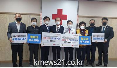 ▲ [사진제공 = 대구광역시]민주평화통일자문회의 대구지역회의(부의장 배한동)는 17일 오후 대한적십자사 대구지사를 방문해 민주평통 해외지역협의회에서 모금한 성금 8,000만원을 전달했다.