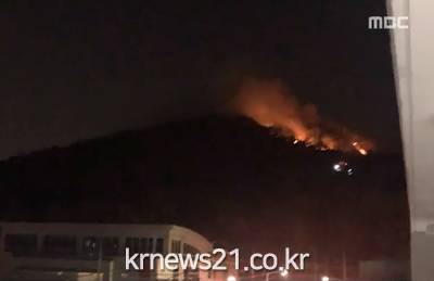 ▲ [사진출처 = MBC뉴스 캡처]전국에 태풍급 강풍이 예보된 19일 서울 노원구 상계동 수락산에서 산불이 발생해 소방당국이 진화 작업을 벌이고 있다.