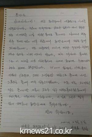 얼마 전 용강동으로 전입해 왔다고 자신을 소개한 양옥모(78) 할머니는 현금 50만 원과 편지가 들어 있는 봉투를 건네 왔다. 편지에는 “코로나19 극복을 위한 자원봉사에 함께 하지 못함을 유감으로 생각하며, 사태 극복을 위해 애쓰는 자원봉사자들을 위해 성금을 기부합니다”라고 적혀있었다.