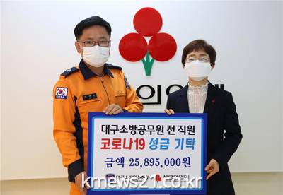 이번 모금은 ‘코로나19’ 종식을 위해 혼신의 힘을 다하고 있는 대구소방이 국민 안전 확보와 위기 극복을 위해 전 직원의 자율적인 뜻을 모은 것이다.