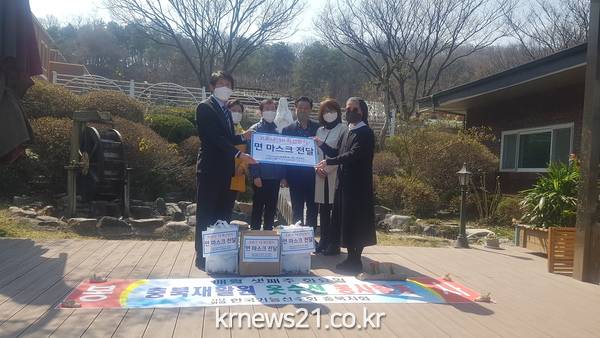(사)한국기능선수회 충북지회 회원들이 25일 코로나19 예방을 위해 수제마스크 300개를 충북재활원에 기부했다.