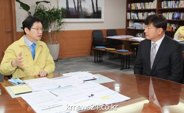 김경수 도지사는 “코로나19 극복을 위한 지역기업의 기부에 감사드리며, 전달 받은 소독제는 필요한 곳에 잘 전달하도록 하겠다”고 말했다.