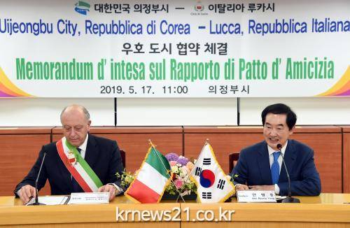 이탈리아 루카시는 오페라 작곡가 푸치니의 고향이자 매년 큰 규모의 푸치니 오페라 축제가 열리는 도시로, 의정부시와 2019년 자매결연의 전 단계인 우호도시 협약을 맺고 음악극 축제 폐막식에 공연팀을 보내 축하공연을 지원하며 문화·예술 등 다양한 분야에서 교류를 추진해왔다.