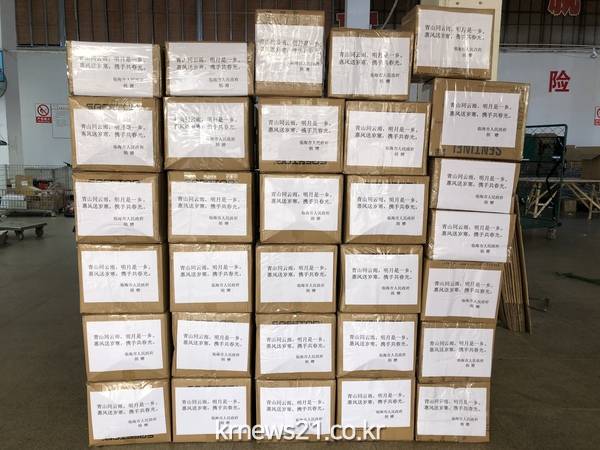 횡성군은 국제자매결연도시인 중국 저장성 린하이시에서 코로나19 확산방지를 위해 마스크 등 구호물품을 보내왔다.