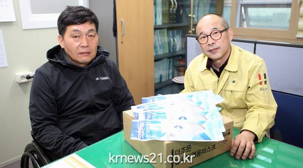 인제군 기린면에 거주하는 박광복씨는 27일 인제군청 주민복지과를 방문하여 KF94 마스크 100매를 전달하였다. 지체장애를 가진 박씨는 본인의 몸이 불편한 중에도 코로나로 인해 고생하는 사람들을 걱정하며 “코로나19로 인해 고생하는 관계자들에게 마스크가 쓰였으면 좋겠다고 이야기 하며, 군민 모두가 함께 노력하여 힘든 시기를 함께 극복해 나가면 좋겠다.”고 이야기 했다.