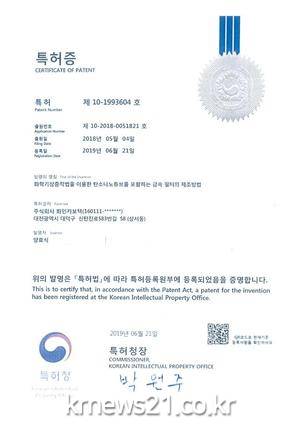 31일 대전시에 따르면 대전시 대덕구 소재 벤처기업으로 공기청정기 와 필터를 제조하는 ㈜화인카보텍(대표 양효식)은 KF80보다 호흡이 편한 탄소나노튜브 면직필터*인 KF99필터(포름알데히드 99.99% 포집효과)를 개발했다.