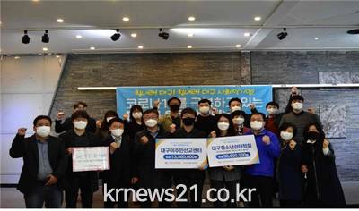 대구 사회적경제기업은 코로나19로 인한 경영상의 어려움에도 불구하고, 복지 사각지대에서 힘겨워하는 청소년이나 이주노동자를 위해 십시일반 모금한 성금 4천400만원과 양말 등의 물품 등을 6개 ‘지역 청소년쉼터’와 ‘대구이주민선교센터’에 전달했다.