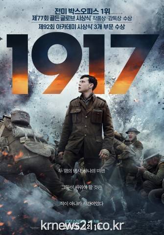 영화 예매 사이트 예스24에 따르면 샘 멘더스 감독의 '1917'이 예매율 18.6%로 개봉 두 달여 만에 예매 순위 1위에 올랐다. '1917'은 실제같은 전투씬으로 유명한 전쟁 블록버스터로 미국 아카데미시상식에서 봉준호 감독의 영화 '기생충'과 각축을 벌여 국내에서도 화제가 됐던 영화다.