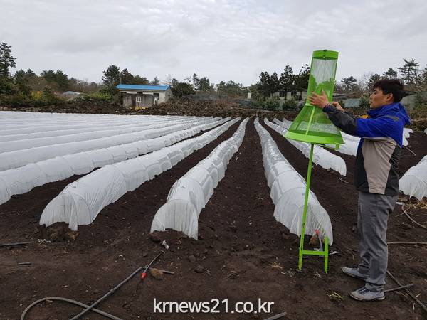 제주특별자치도농업기술원 동부농업기술센터(소장 김성배)는 지난해 제주 동부지역에서 국내 처음 발생하여 옥수수에 피해를 주었던 열대거세미나방 등 비래해충 모니터링을 한 달 일찍 실시한다고 밝혔다.