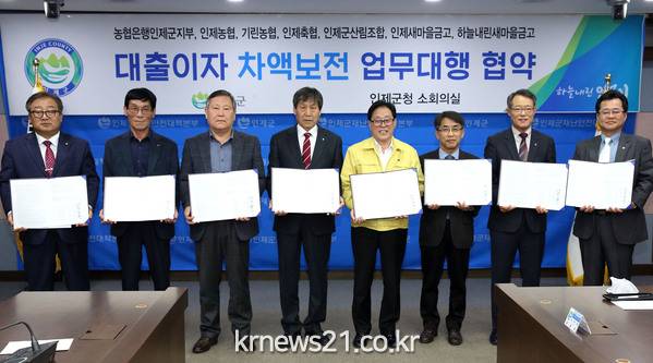 인제군은 2일 군청 소회의실에서 최상기 인제군수와 ㈜NH농협은행 인제군지부, 인제농업협동조합, 기린농업협동조합, 인제축산업협동조합, 인제군산림조합, 인제새마을금고, 하늘내린새마을금고 등 7개 관내 금융기관장과‘인제군 소상공인 대출금 이자차액보전 업무협약’을 체결했다.