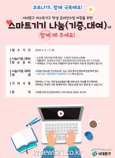 문석진 서대문구청장은 “온라인 교육 환경의 격차를 극복할 수 있도록 추진하는 스마트기기 나눔에 주민 분들의 많은 참여를 바란다”고 밝혔다.