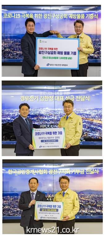 김선갑 광진구청장은 “코로나19 장기화로 어려운 상황 속에서도 따뜻한 손길을 전해주신 모든 분들께 진심으로 감사드린다”라며 “보내주신 소중한 물품과 성금은 코로나19로 인해 어려움을 겪는 구민들에게 전달해 하루 빨리 코로나19를 극복할 수 있도록 최선을 다하겠다” 고 말했다.