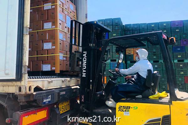 인제군에서 생산된 우수 농․특산물품이 코로나19 확산세 속에도 웰빙 상품으로 꾸준한 인기를 얻으며 미국 서부 LA 수출길에 오른다.