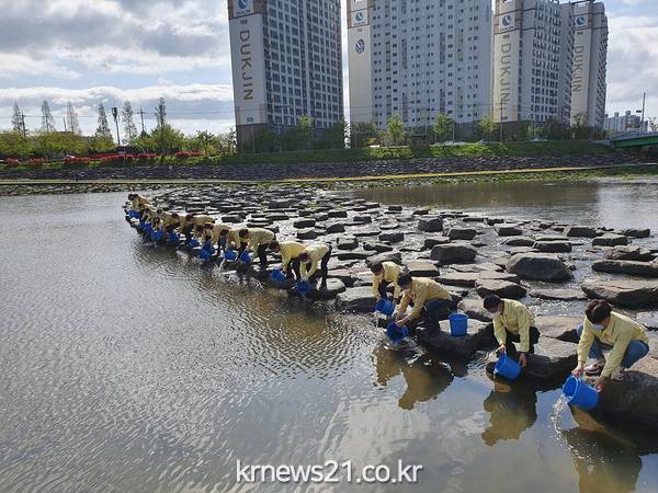 동천) 일대에 12만 마리의 어린 은어를 방류했다고 20일 밝혔다.