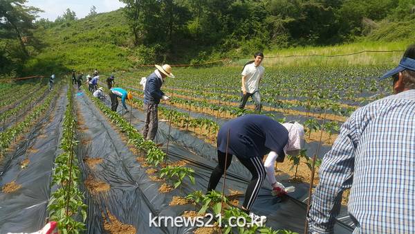 제천시는 코로나19로 인한 외국인 근로자 미 입국과 농촌인구 고령화 등으로 그 어느 해보다 농촌일손 구하기가 어려운 실정을 감안해 공직자들이 나서 농촌에 활력소를 불어넣고 코로나19 극복의지를 표현하기 위해 일손돕기를 추진하게 됐다.
