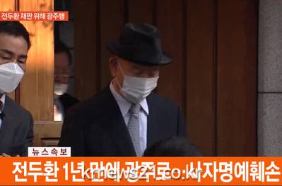 ▲ [사진출처 = 연합뉴스TV 캡처]오늘(27일) 전두환(89) 전 대통령 5·18 민주화운동 40주년을 앞두고 피고인 신분으로 광주 법정에 선다. 지난해 3월 11일 사자명예훼손 혐의로 법원에 출석한 지 1년여 만이다.