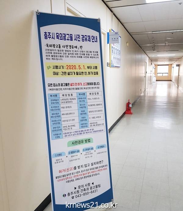 충주시가 내달 1일부터 불법 옥외광고물 설치 예방을 위해 ‘옥외광고물 사전 경유제’를 본격 시행한다.