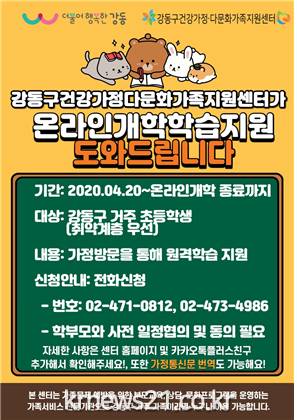 ▲ [사진=홍보포스터]강동구(구청장 이정훈)가 전국 초·중·고등학교 온라인 개학으로 인해 원격수업에 어려움을 겪는 가정에 방문하여 온라인 학습을 원활하게 할 수 있도록 돕는다.