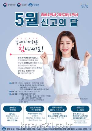▲ [사진=홍보포스터]양평군은 오는 5월 11일부터 6월 1일까지 종합소득세 확정 신고기간 동안 국세·지방소득세 합동신고센터를 운영하여 민원인이 한 곳만 방문하더라도 개인지방소득세를 동시에 신고할 수 있다고 밝혔다.