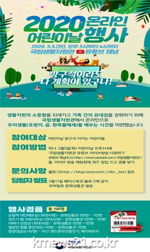 국립생물자원관은 매년 어린이날을 맞아 전시관에서 다양한 체험과 교육이 가능한 행사를 개최해 왔으나, 올해는 코로나19에 따른 사회적 거리두기 운동에 함께하기 위해 온라인으로 마련했다.