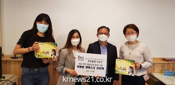 고양시 덕양구 흥도동 복지일촌협의체가 지난 4일 탈북청소년 대안학교인 한벗학교(교장 박다니엘)를 방문하여 지난달 원흥비전 태권도장 원생들로부터 기탁받은 면마스크 200장을 전달했다고 밝혔다.