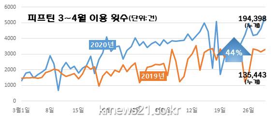 시는 올해 3∼4월 피프틴 이용 횟수가 19만398건으로 지난해 같은 기간보다 5만8955건 늘었고, 가입회원은 1천명 이상 증가했다고 밝혔다.