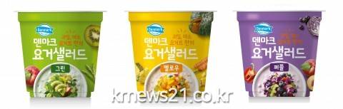 ‘덴마크 요거샐러드’ 3종은 아침 먹을 시간이 부족한 학생, 늦은 저녁 식사가 부담스러운 직장인, 건강한 다이어트를 원하는 사람들이 간편한 한 끼로 활용할 수 있는 제품이다. 또한 제품 한 컵에 사과 1개분의 식이섬유와 150억 마리의 프로바이오틱 유산균이 들어있어 장 건강에도 도움을 줄 수 있다.