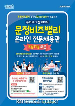 ▲ [사진=홍보포스터]송파구(구청장 박성수)가 국내 최대 취업플랫폼인 잡코리아를 통해 운영하는 ‘문정비즈밸리 전문채용관’을 새 단장하고 5월 11일부터 본격 운영한다고 밝혔다.