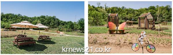 강동구는 기존 텃밭 구획을 체험텃밭, 토종텃밭, 약초텃밭, 텃논, 정원, 쉼터 등으로 재정비하고, 트렐리스(울타리), 조형 횃대, 원두막, 야외 테이블, 의자 등 편의시설을 보강했다. 로즈마리, 라벤더, 살구나무, 꽃사과나무 등 다양한 허브와 관목을 심은 향기정원과 담소정원, 파믹스센터와 연결된 데크를 설치한 수변 휴게정원를 조성하며 주민 휴식과 소통을 위한 공간도 대폭 늘렸다.