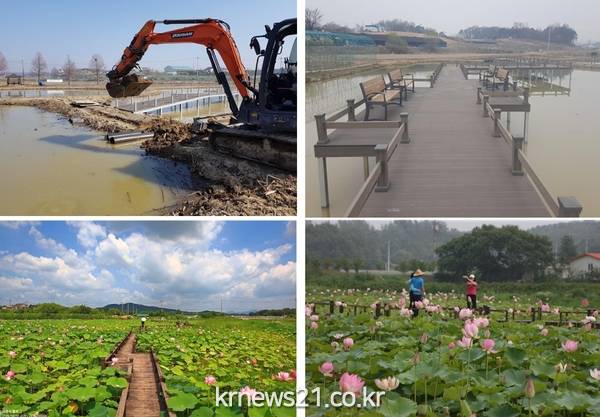 이천시(시장 엄태준)는 최근 설성 성호호수 연꽃단지 5만㎡에 대해 약 2억원의 사업비를 들여 노후 목재데크 교체, 연꽃보식, 흰붓꽃 등 수생식물보강, 포토존 정비 등 전면적인 보수정비공사를 마쳤다고 15일 밝혔다.