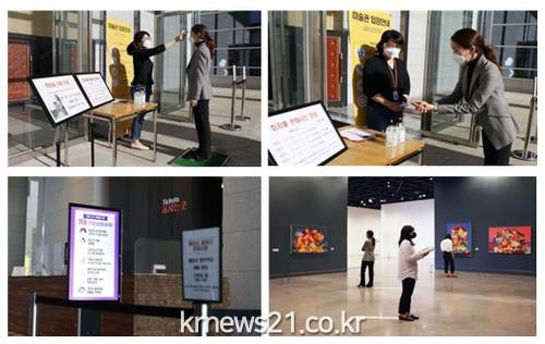 안내 데스크 앞 비말 방지 가림판 설치, 엘리베이터 내 항균필름 부착, 발판 소독매트 설치, 발열 체크, 2m 관람 거리 유지를 위한 동선 표시, 관람객 접촉구간 주기적 알코올 소독, 생활 속 거리두기 홍보 등 코로나19 확산 예방과 안전 관람을 위한 자체 세부지침을 마련해 재개관에 대비했다.