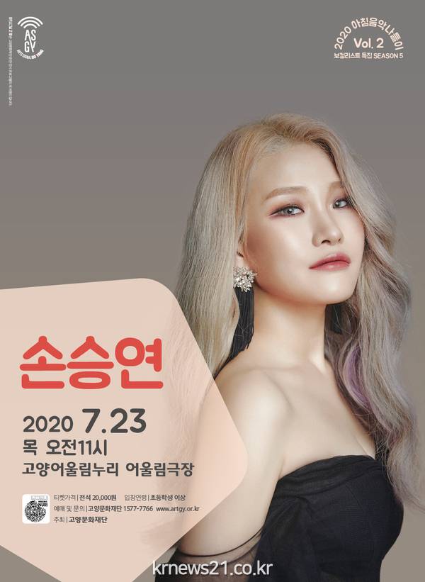 고양문화재단(이사장 이재준)은 고양어울림누리에서 2020년 한해 동안 5/28, 7/23, 9/24, 11/26 등 홀수달 마지막 목요일 오전 11시, 4차례의 공연을 통해 <</span>아침음악나들이 ‘보컬리스트 특집 시즌 5’>를 이어간다. 2016년 보컬리스트 특집을 처음 선보인 이래, 지난 4년간 유료객석점유율 83%를 상회하며 뜨거운 사랑을 받아온 <</span>아침음악나들이 ‘보컬리스트 특집 시즌 5’>는 오직 가창력 하나만으로도 묵직한 감동을 이끌어내는 명품 보컬리스트들을 만나는 특별한 무대다.