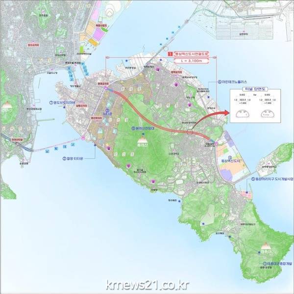 이번 사업은 영도구의 혼잡도로 개선을 위해 봉래동 봉래교차로에서 영도구 중앙의 봉래산을 터널(연장 2.78km)로 통과하여 반대측 동삼동 해경교차로(동삼혁신도시) 간을 연결하는 사업이다. 총연장은 3.1km이며 4차로 도로를 신설한다. 총사업비는 2,079억 원(국비 995억·시비 1,084억)에 달한다.