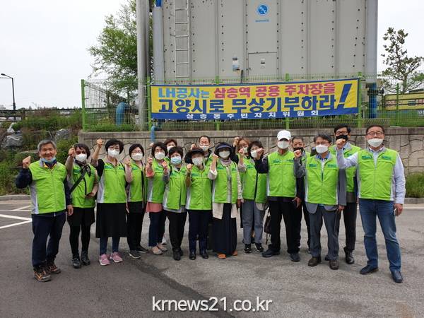 고양시 덕양구 삼송동 주민자치위원회(위원장 윤명복)는 지난 21일 삼송역 환승주차장을 고양시에 무상기부 할 것을 촉구하는 궐기대회를 이재준 고양시장 삼송역 환승주차장 현장 집무실에서 가졌다.