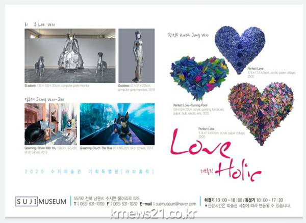 ▲ [사진제공 = 남원시]남원시가 지난 5월 6일부터 사회적 거리에서 생활 속 거리 두기로 전환함에 따라 남원시립김병종미술관을 비롯한 문화시설들을 단계적으로 개관했다. 이에 남원 수지미술관도 재개관, 9일부터 10월 4일까지 사랑을 테마로한 기획특별전 ‘러브홀릭’을 전시 중이다.