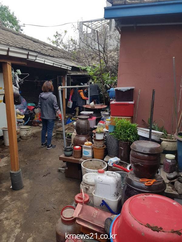이미 집 주변의 고물 등에서 발생하는 악취 등으로 인해 이웃과 마찰을 여러 번 빚어온 상황으로, 더 이상 이 사태를 방치하면 이웃들뿐만 아니라 할머니의 건강에도 악영향을 끼칠 것으로 판단돼 담당 통장님과 함께 할머니께 고물을 치우도록 설득함과 동시에 엄청난 양의 고물 등 쓰레기를 처리하기 위해 직능단체의 협조를 요청했다.