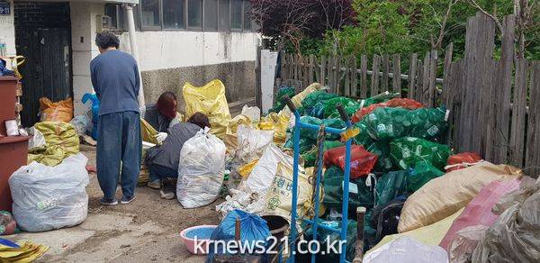 현장 점검 결과 할머니께서는 고물을 팔아 살림에 보탤 생각으로 오랫동안 플라스틱, 폐지, 유리병 등의 고물 3톤 정도를 혼자서 모아온 것으로 확인됐다.