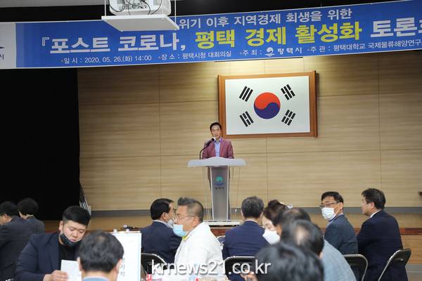 평택시(시장 정장선)는 26일 평택시가 주최하고 평택대학교 국제물류 해양연구소가 주관하는 ‘포스트 코로나, 평택경제 활성화 토론회’를 시청 대회의실에서 개최했다.