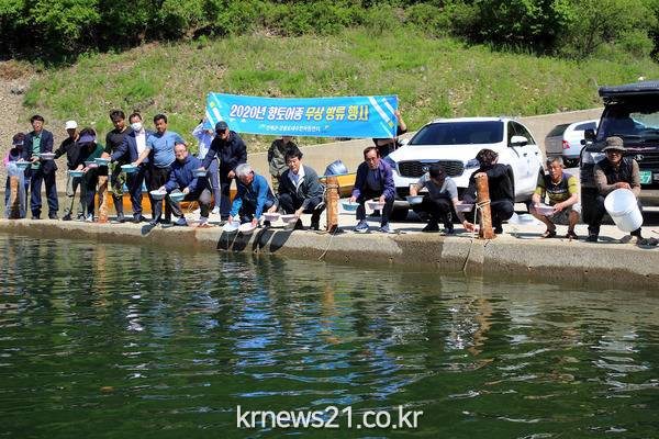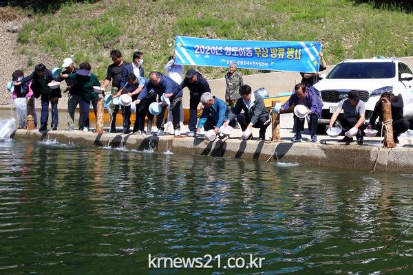 인제군은 27일 남면 상수내리 선착장에서 관내 어업인 등 15명이 참여한 가운데 강원도내수면자원센터로부터 무상으로 분양받은 어린 뱀장어 4,000마리를 방류했다.